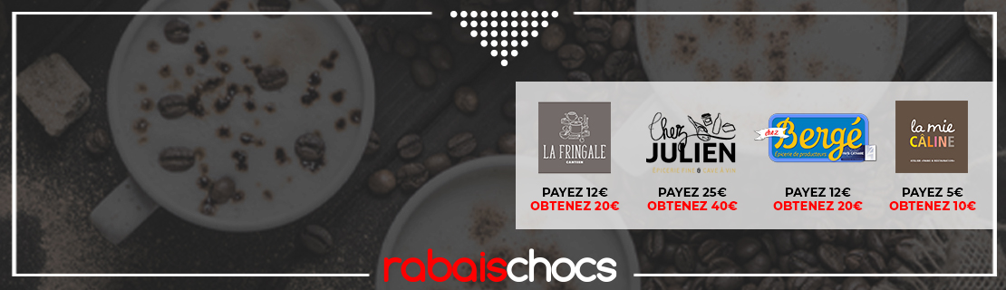 Bienvenue sur rabaischocs.fr, votre portail en ligne pour économiser. Laissez-vous surprendre par les offres exclusives de vos commerçants locaux et faites-vous plaisir en vous procurant des bons d’achat avantageux pour les produits et services qui vous intéressent. Des économies de 20 à 50 % vous attendent!